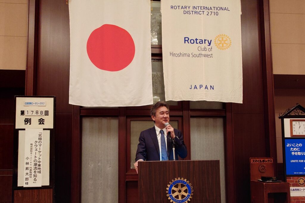 理事・小林昇太郎が広島西南ロータリークラブにて登壇!中東・クウェートとの友好関係と未来へのアプローチを講演